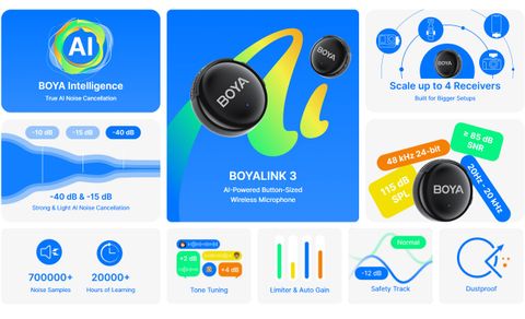 Với chip AI tích hợp được hỗ trợ bởi mạng nơ-ron sâu (DNN), BOYALINK 3 mang đến khả năng khử tiếng ồn mà bạn chưa từng nghĩ là có thể. Được đào tạo trên hơn 700.000 mẫu tiếng ồn và 20.000 giờ học sâu, nó tách giọng nói khỏi tiếng ồn trong vài mili giây. Trong môi trường ồn ào như tiếng còi xe đột ngột hoặc tiếng sóng vỗ, hãy kích hoạt chế độ mạnh để giảm tới 40 dB để chỉ thu giọng nói của bạn; trong môi trường yên tĩnh hơn, hãy chuyển sang chế độ nhẹ để giảm 15 dB, giảm tiếng ồn trắng trong khi vẫn giữ được bầu không khí tự nhiên.