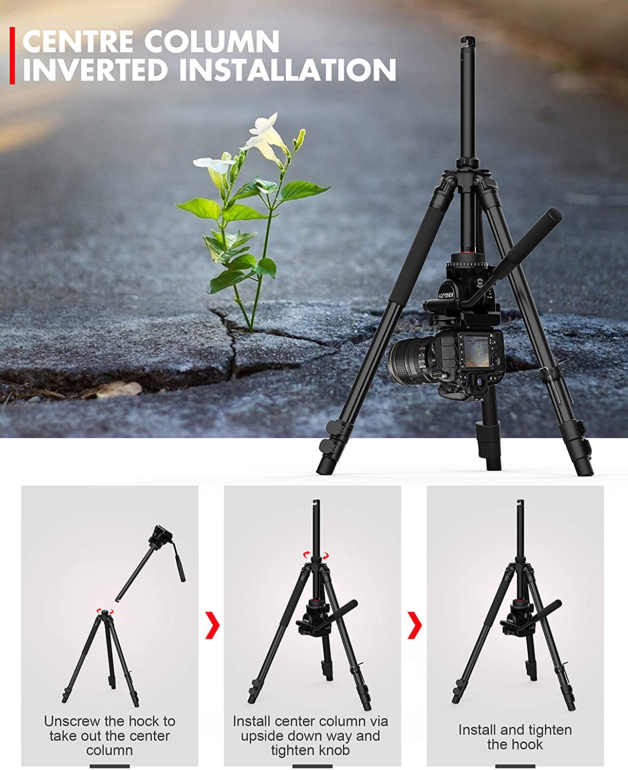– Bộ ba chân chuyên nghiệp được thiết kế đặc biệt để quay phim và quay video, phát sóng trực tiếp , chụp ảnh cưới và vv Chân được làm bằng hợp kim nhôm cao cấp, bền vững