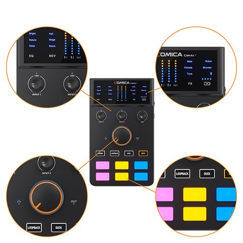 4 hiệu ứng âm thanh khởi động của vỗ tay / tiếng cười / cổ vũ / hài hước và 2 hiệu ứng âm thanh tùy chỉnh. Tự do ghi lại các bài hát, nhạc, nhịp điệu yêu thích của bạn và những thứ khác để tùy chỉnh hiệu ứng âm thanh độc quyền. Tạo ra bầu không khí phát trực tuyến / podcasting bất cứ lúc nào.