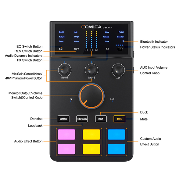 • Điều chỉnh 3 chế độ EQ, 3 chế độ hồi âm và 5 hiệu ứng giọng nói