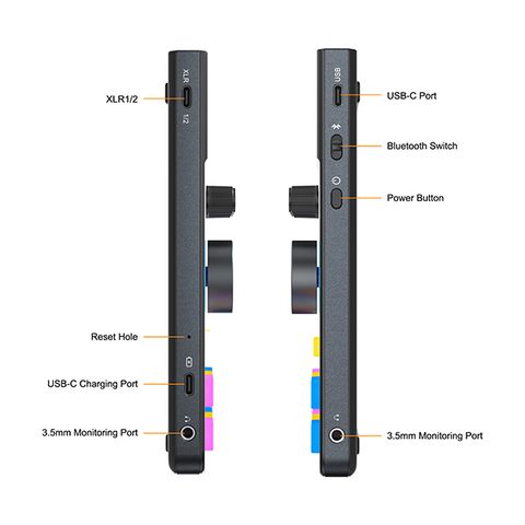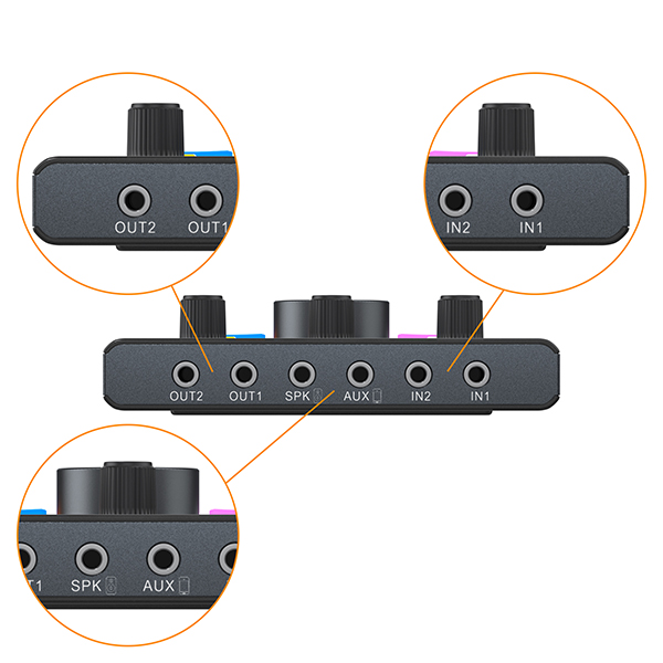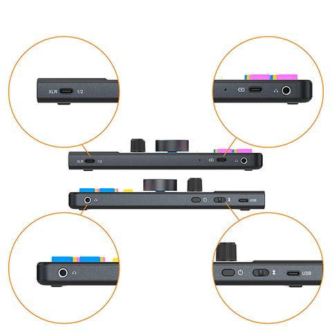 Được thiết kế với XLR kép bên ngoài và giao diện đầu vào micrô 3,5 mm kép bên trong, card âm thanh tương thích với 99% micrô XLR và 3,5 mm, đồng thời hỗ trợ 4 đầu vào micrô cùng lúc mà không gặp sự cố trong quá trình ghi âm nhiều người.