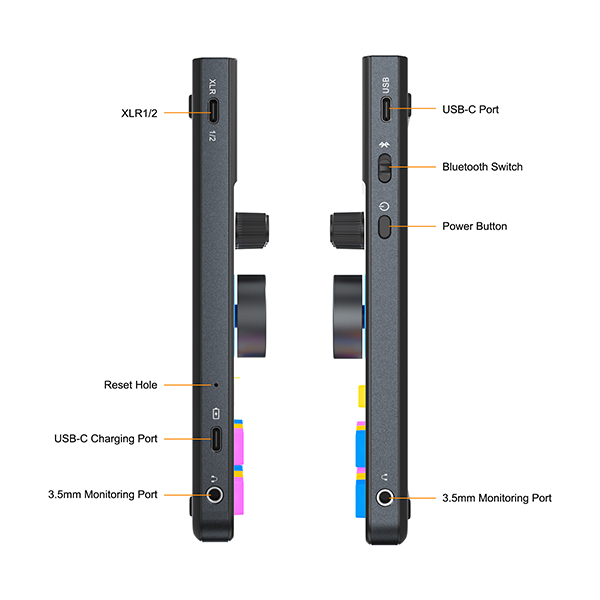 • Hỗ trợ đa giao diện 3.5mm / XLR cho đầu vào micrô 5V / 48V