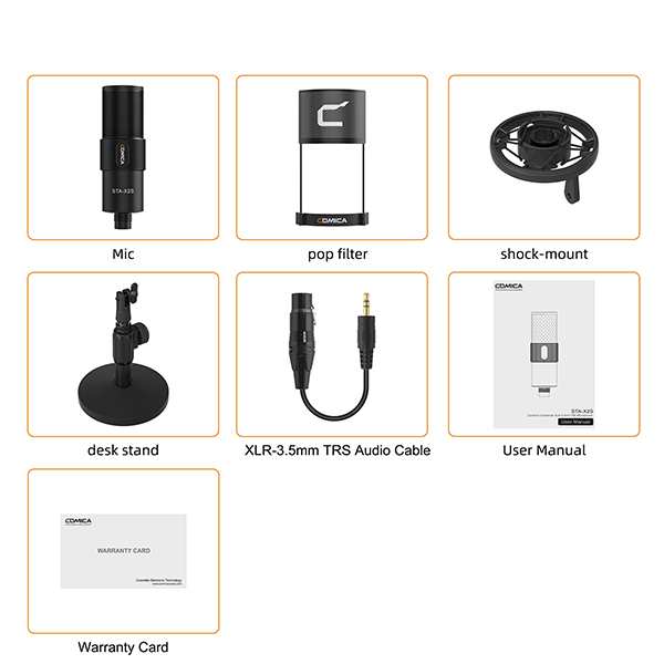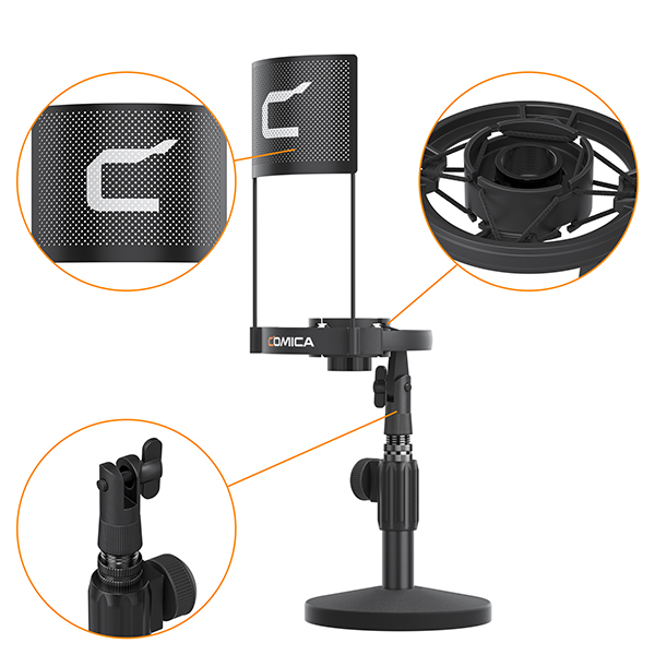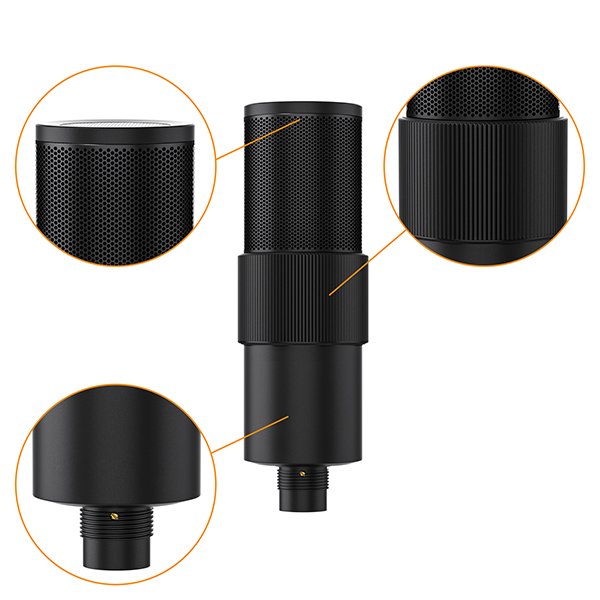 Mic mẫu Cardioid che chắn tiếng ồn bên ngoài phạm vi thu âm một cách hiệu quả; bộ lọc pop kim loại loại bỏ âm thanh rít và nói ngọng; Cấu trúc hấp thụ sốc giảm thiểu tiếng ồn do rung động, giảm tiếng ồn gấp ba lần.