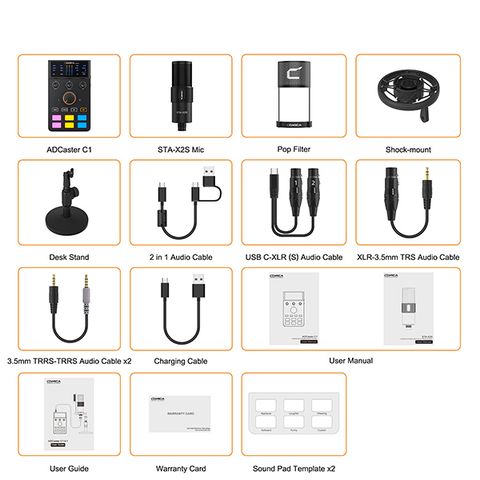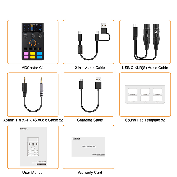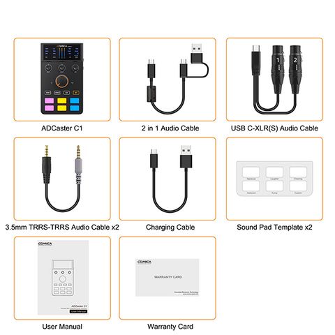 Card âm thanh ADCaster C1 có tốc độ lấy mẫu cao 48kHz / 24bit và độ sâu bit, độ ồn siêu thấp. Card âm thanh đa năng có giao diện đa dạng - đầu vào XLR 48V, đầu vào 3,5mm, giao diện USB OTG; Micrô tụ điện cardioid 25mm với đáp ứng tần số tuyệt vời, nó có thể giảm thiểu tiếng ồn môi trường không mong muốn và thu âm thanh rõ ràng hơn, đạt được chất lượng âm thanh HiFi.