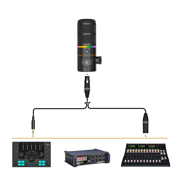 Micrô hỗ trợ đầu ra kỹ thuật số USB-C và đầu ra tương tự XLR, tương thích rộng rãi với điện thoại thông minh, máy tính, giao diện âm thanh, v.v. Nó có thể đáp ứng nhu cầu của nhiều tình huống như podcasting, chơi game, phát trực tuyến, ghi âm, v.v.