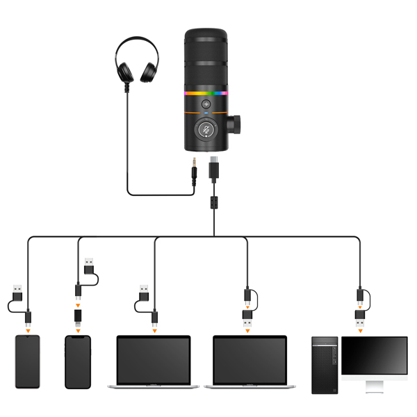 Micrô hỗ trợ đầu ra kỹ thuật số USB-C và đầu ra tương tự XLR, tương thích rộng rãi với điện thoại thông minh, máy tính, giao diện âm thanh, v.v. Nó có thể đáp ứng nhu cầu của nhiều tình huống như podcasting, chơi game, phát trực tuyến, ghi âm, v.v.