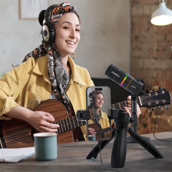 48kHz high sampling rate and 24-bit depth provide lossless sound and meet the high demands in post-producion. The buit in sound card adjusts the audio to make it balanced and full. The CalMix® audio processing algorithm developed by Comica can identify the vocal voice precisely and filter out redundant noises