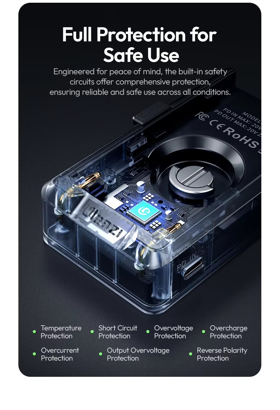 6. Được thiết kế để mang lại sự an tâm, các mạch an toàn tích hợp cung cấp khả năng bảo vệ toàn diện, đảm bảo sử dụng đáng tin cậy và an toàn trong mọi điều kiện.
