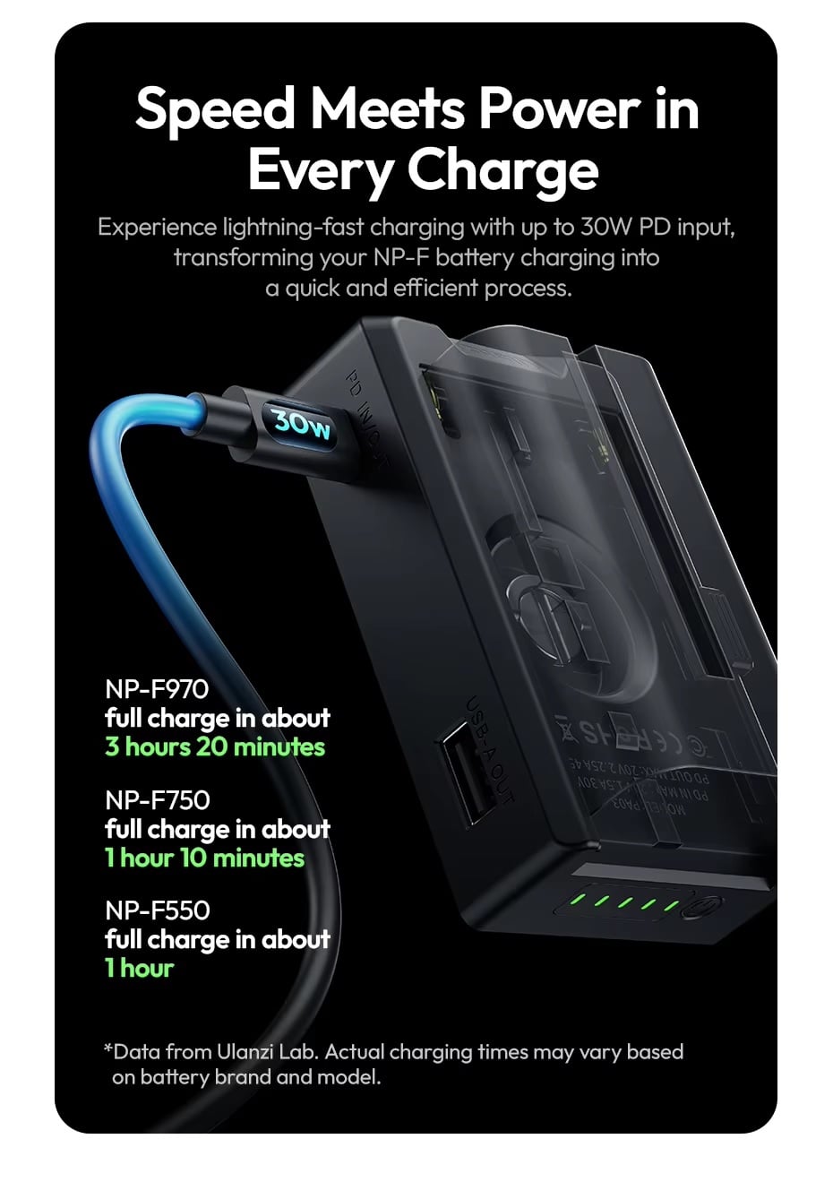4. Trải nghiệm sạc nhanh như chớp với đầu vào PD lên đến 30W, biến quá trình sạc pin NP-F của bạn thành một quá trình nhanh chóng và hiệu quả.