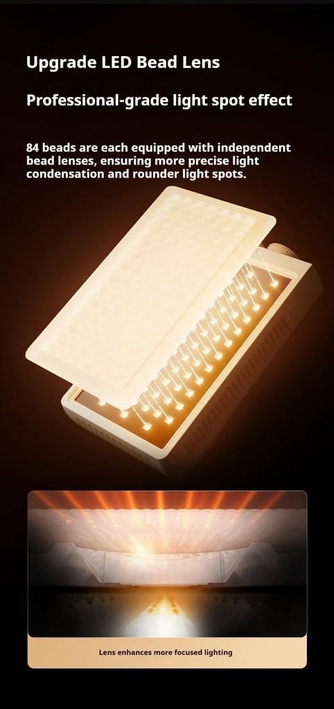 84 hạt đèn LED được trang bị thấu kính độc lập, đảm bảo sự hội tụ ánh sáng chính xác hơn và các điểm sáng tròn hơn.