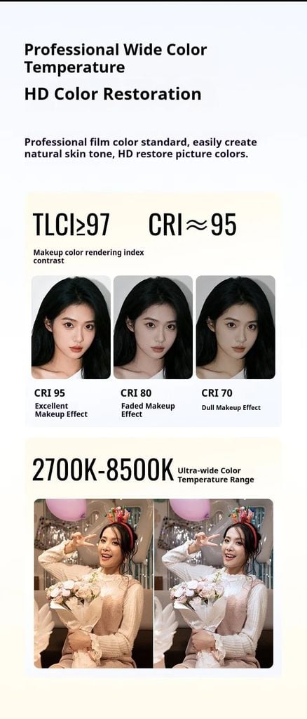 Độ nét cao, phục hồi tông màu da tự nhiên. CRI 95 TLCI>97