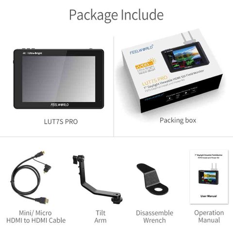 - LUT7S PRO có 3G-SDI, đầu vào và đầu ra HDMI 4K, cho phép nó không chỉ hiển thị tín hiệu trực tiếp mà còn gửi chúng đến các màn hình khác cùng một lúc. Đó là khả năng hiển thị hình ảnh trực tiếp trên nhiều màn hình cùng một lúc mà vẫn duy trì được chất lượng video gốc.