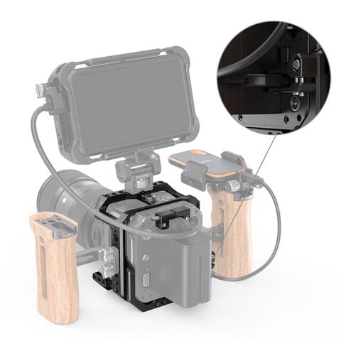 - Lồng cố định với máy ảnh thông qua các vít 1/4 ”-20 với một vít ở trên và hai vít ở dưới để tránh xoắn. Có nhiều luồng 1/4 "-20 và ARRI 3/8" -16 cho các phụ kiện như Tay cầm bên 2093, Tay cầm trên cùng 2165, Giá treo màn hình 2348 và Giá đỡ SSD 2343.