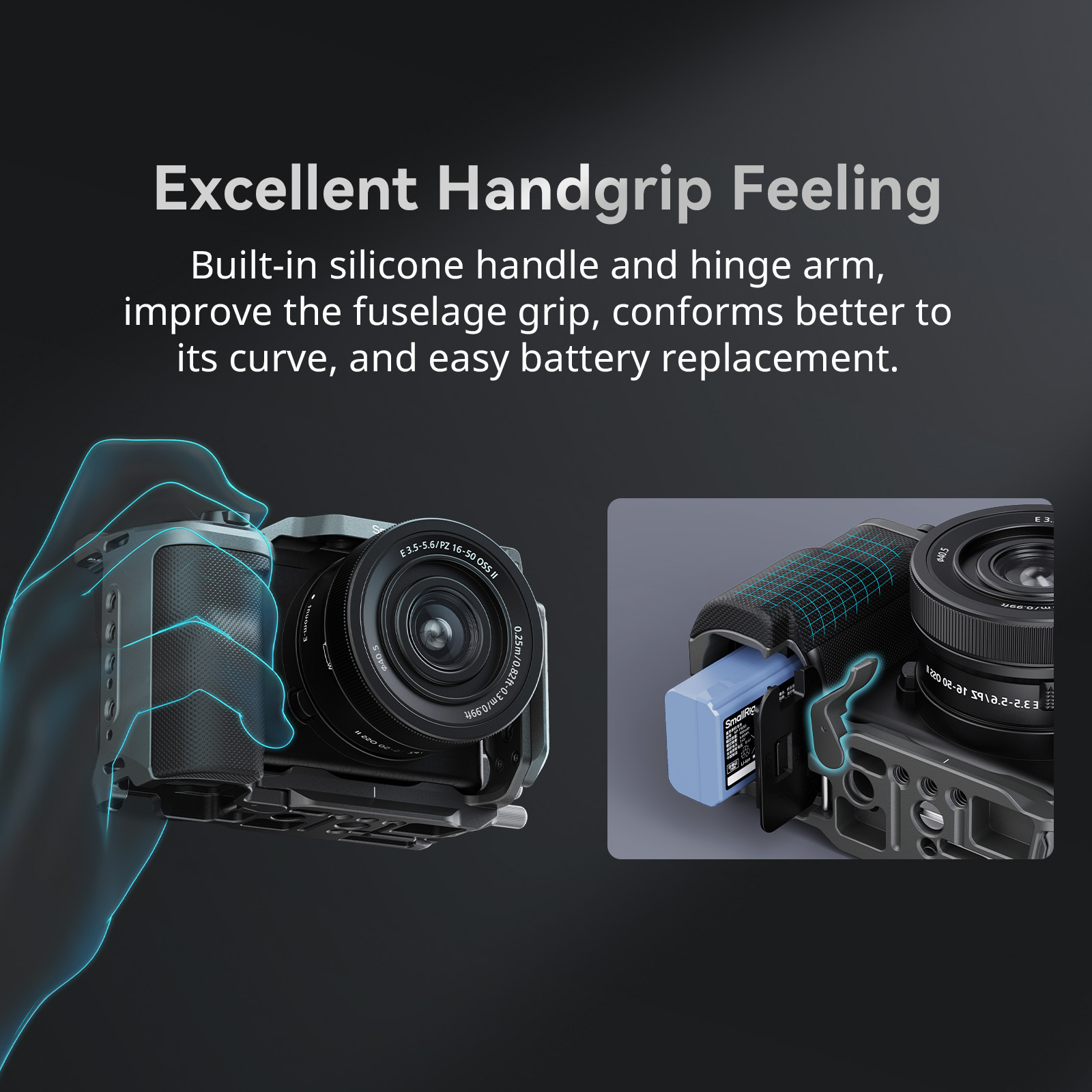 5. Bộ khung có giao diện đa năng, bao gồm các lỗ ren 1/4"-20 tích hợp, lỗ định vị ARRI, giá đỡ giày lạnh, lỗ dây đeo và giao diện QD để gắn các phụ kiện như tay cầm, micrô, đèn, màn hình, dây đeo vai và cổ tay.