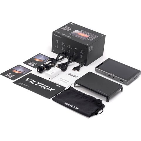 Bao gồm mũ che nắng, pin dòng L, giá đỡ bộ chuyển đổi đế, túi đựng mềm, miếng dán bảo vệ màn hình, cáp USB-A sang USB-C, cáp HDMI loại A sang HDMI loại A và cáp HDMI loại A sang mini-HDMI.