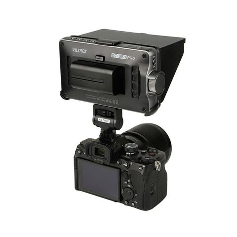 Thiết kế hood che có thể tháo rời để tháo lắp nhanh, chặn ánh sáng nhiễu để quay phim ngoài trời tốt hơn.