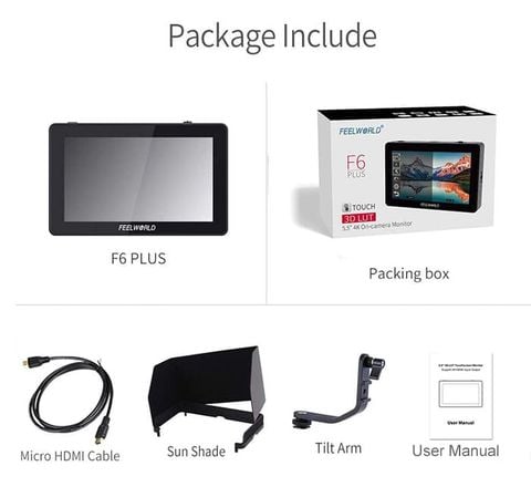 - Đi kèm theo mỗi Monitor Feelworld F6 Plusx là một tấm che nắng di động. Tấm che này sẽ giúp người dùng tập trung hơn vào video và tránh được sự can thiệp của ánh sáng mạnh, mang lại trải nghiệm hình ảnh tốt hơn. Quá trình lắp đặt đơn giản và nhanh chóng, rất thích hợp để quay ngoại cảnh.