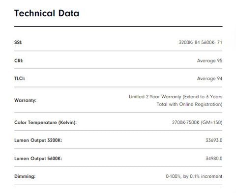 Đối với đầu ra, FC-500C cung cấp 57050 lux (5300 fc) ở khoảng cách 1 mét với gương phản xạ đi kèm. Bạn có thể nhanh chóng tinh chỉnh độ mờ từ 0 đến 100% với mức tăng 0,1% và xếp hạng SSI cao là 84 (3200K) và 71 (5600K), CRI là 95 và TLCI là 94 đảm bảo màu sắc của bạn sẽ luôn chính xác. Nó có khả năng điều chỉnh từ xanh sang đỏ tươi +/- 150 để hòa hợp với các nguồn sáng khác. Bộ nguồn đi kèm có một dây đeo để treo trên giá đỡ đèn và một tấm tháo nhanh được cung cấp để sử dụng kẹp ASCPQRFZ có sẵn riêng biệt. Một loạt các bộ điều chỉnh ánh sáng tương thích với Ngàm Bowens tiêu chuẩn và giá đỡ ô tích hợp cung cấp nhiều tùy chọn định hình ánh sáng hơn. FC-500C mạnh mẽ, nhiều màu sắc, linh hoạt, chính xác, dễ sử dụng và luôn sẵn sàng di chuyển trong hộp xốp cứng đi kèm.