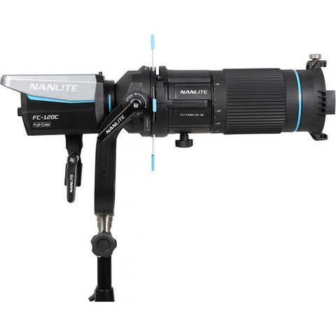 Đạt được chất lượng ánh sáng và khả năng điều khiển zoom chính xác với phụ kiện đèn chiếu cho ngàm FM với ống kính zoom 18-36° từ Nanlite. Phụ kiện đèn chiếu này tương thích với một số đèn Forza, FC và FS được trang bị ngàm FM độc quyền của thương hiệu. Phụ kiện cho phép góc chiếu thay đổi từ 18 đến 36°, với hệ thống quang học tiện lợi giúp tăng cường độ sáng. Nhờ ống kính xoay 360°, việc zoom không yêu cầu phải tháo gobo hoặc màn trập. Tay cầm khóa cho phép điều chỉnh độ nghiêng để tìm đúng vị trí cần thiết. Cần cong cho phép tương thích rộng với chân đế tùy chọn 1-1/8" và 5/8".