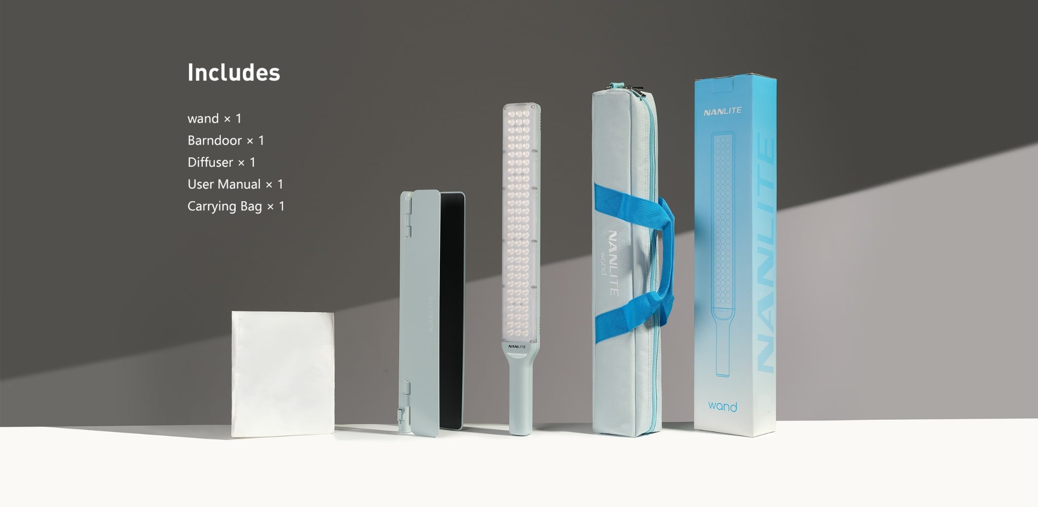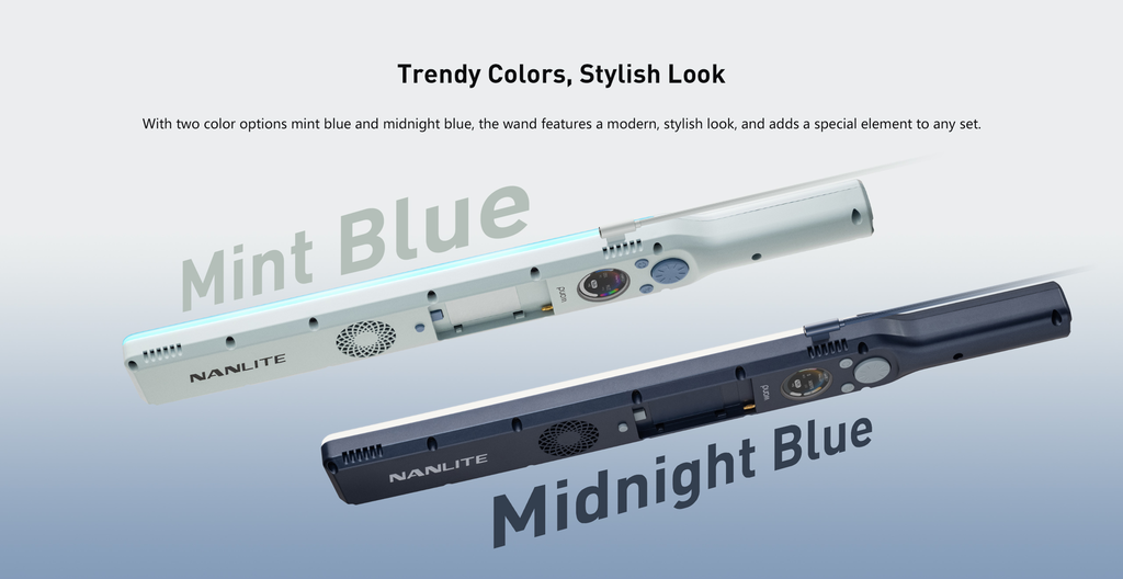 Được thiết kế để chiếu sáng sáng tạo với đổi màu sắc đầy đủ, Đèn LED Nanlite Wand RGB 1.6 từ Nanlite với lớp hoàn thiện màu xanh Blue Midnight lý tưởng để có được các hiệu ứng thú vị, trong khi kiểu dáng nhẹ giúp bạn dễ dàng và thú vị khi sử dụng thiết bị cầm tay. Công cụ RGBW Nebula C4 của cây đèn trên cho phép lên đến 36.000 màu ở chế độ HSI và CCT thay đổi từ 2700 đến 7500K với điều chỉnh màu xanh lá cây đến đỏ tươi +/- 150. Đèn có nhiều tùy chọn nguồn và điều khiển. Nó tương thích với bộ sạc USB-C PD 3.0 bên ngoài và pin dự phòng, đồng thời nó cũng có thể chạy bằng pin NP-F có sẵn riêng có thể được đặt ngay trên thân đèn. Nanlite Wand bao gồm một bộ tản sáng có thể tháo rời cho chất lượng ánh sáng nhẹ nhàng, tôn dáng, cũng như Barndoor có thể tháo rời để kiểm soát chùm tia và tràn hơn nữa. Nanlite cũng cung cấp một túi đựng bổ sung vào thân máy có độ di động cao 0.93 lb của cây đèn.