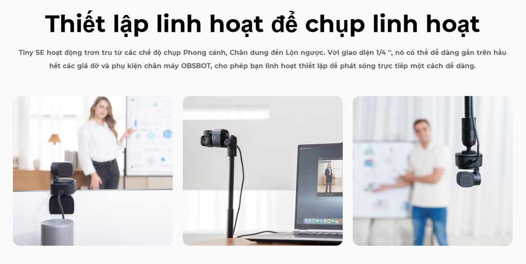 Phát trực tuyến với độ mượt mà vượt trội ở tốc độ 100 khung hình/giây ở 1080p hoặc 120 khung hình/giây ở 720p của Tiny SE. Ở tốc độ 100 khung hình / giây, bạn sẽ trải nghiệm chuyển động mượt mà và video chân thực hơn với ít chuyển động mờ hơn. Kết hợp với chất lượng hình ảnh Full HD, Tiny SE lý tưởng cho các chương trình phát trực tuyến và cuộc họp trực tuyến khác nhau.