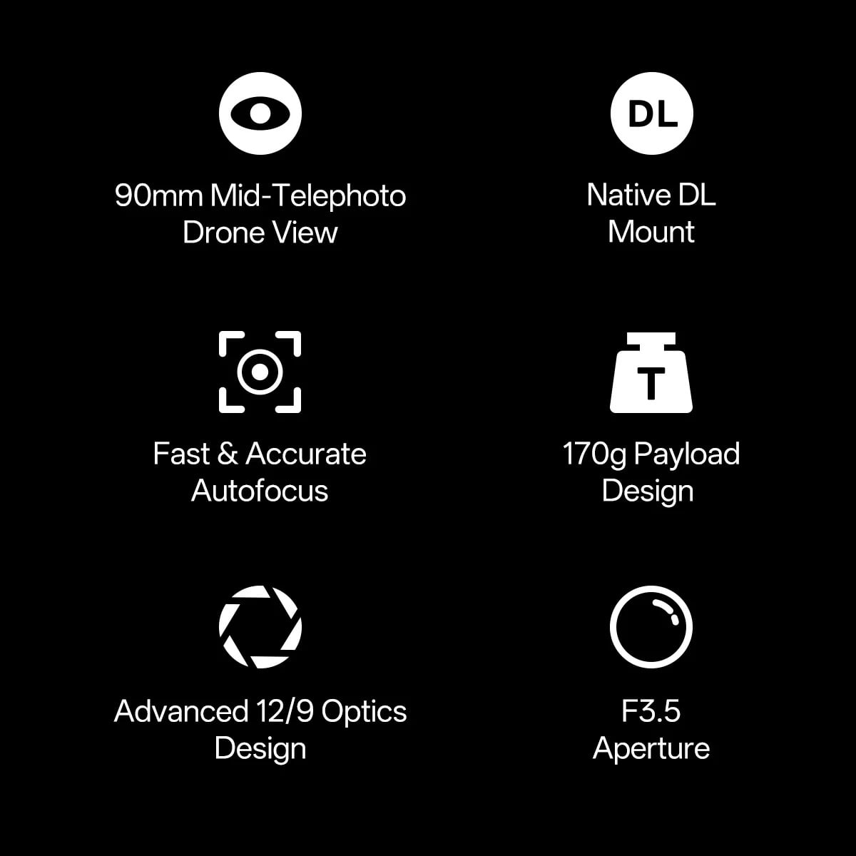 Được chế tạo với ngàm DL gốc, AF 90mm F3.5 tương thích liền mạch với máy ảnh gimbal X9-8K Air trên Inspire 3, mang đến tùy chọn tele trung bình mới mạnh mẽ cho quay phim trên không.