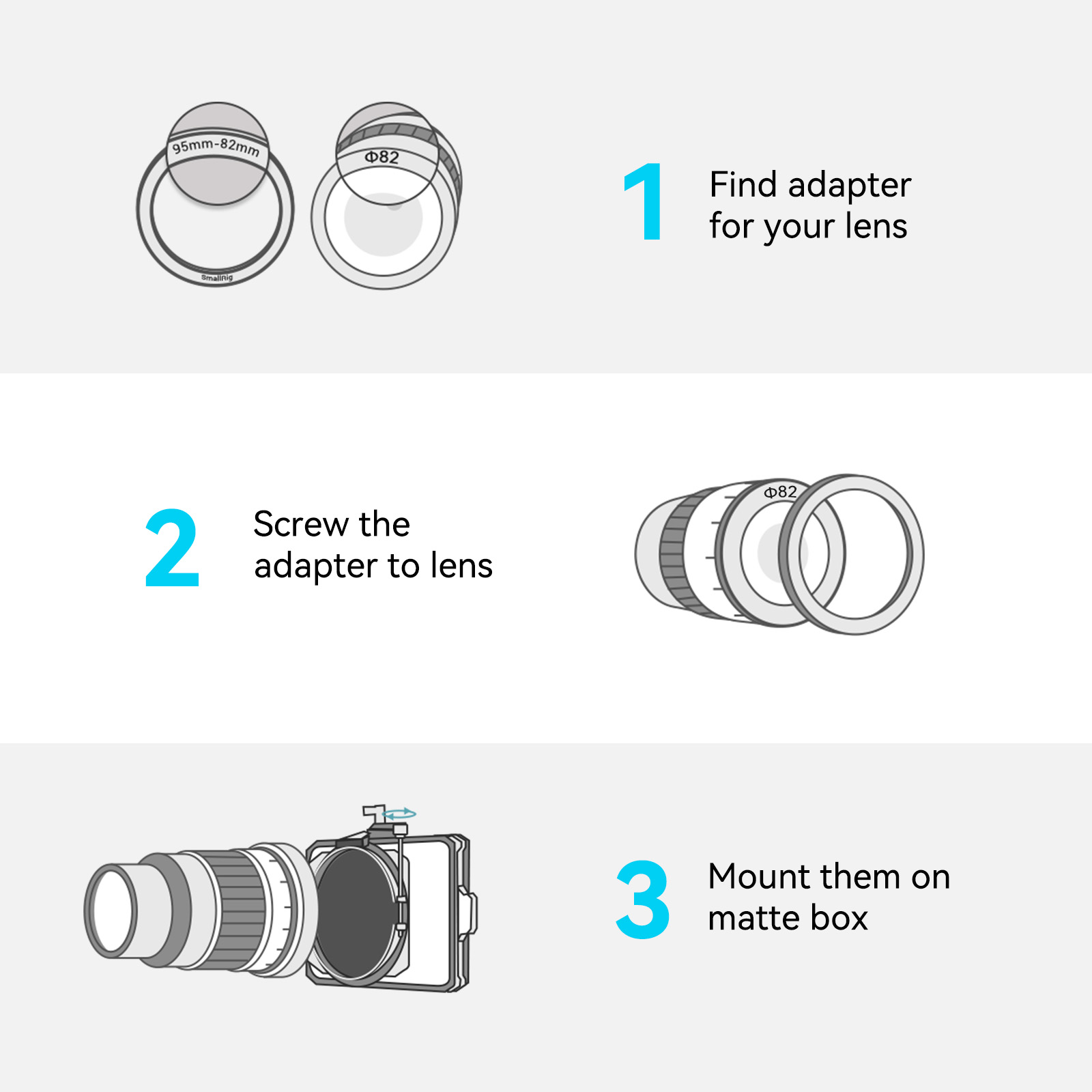 3. Tương thích với vòng chuyển đổi Φ52/55/58/62/67/72/77/82/86-95mm