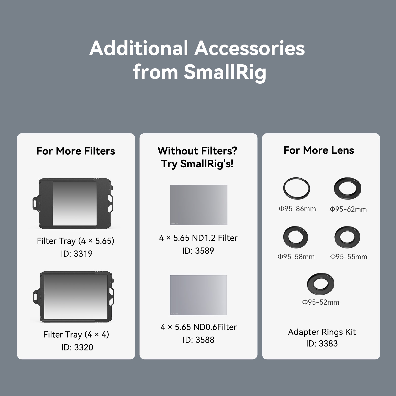2. Bộ vòng chuyển đổi (Φ52/55/58/62/86-95mm) 3383 được bán riêng.