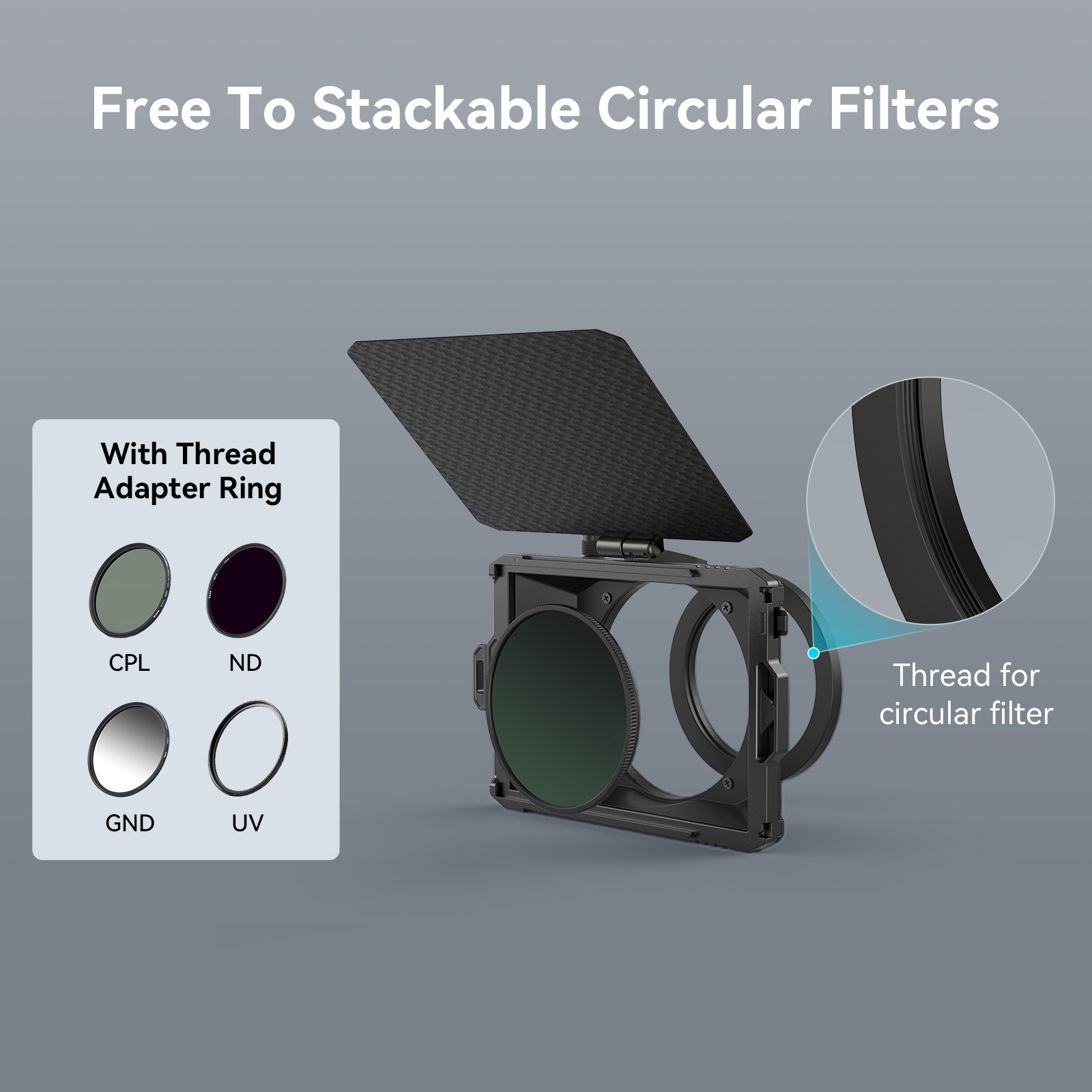 · Hỗ trợ kích thước bộ lọc: Tương thích với nhiều bộ lọc 4 x 5,65" / 4 x 4".