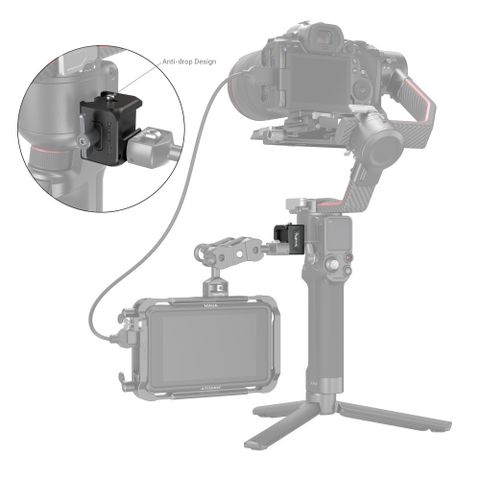 SmallRig NATO Clamp Accessory Mount for DJI RS 2 / RSC 2 / RS 3 / RS 3 Pro/RS 3 mini 3025 được thiết kế để gắn màn hình, micrô, thiết bị không dây, v.v. ở bên cạnh bộ ổn định. Nó có thể được lắp đặt ở mỗi bên của bộ ổn định bằng kẹp NATO, được siết chặt bằng núm xoay và dễ dàng tháo ra nhanh chóng. Với lỗ ren 1/4”-20 và lỗ định vị ARRI 3/8”-16 cho phép gắn màn hình với Magic Arm 2115, cũng như 2163 cho camera hành động để bạn có thể có hai chế độ xem camera. Lỗ ren 1/4”-20 đi kèm với hai lỗ định vị tương thích với giá đỡ điện thoại thông minh DJI RS 2. Đế gắn coldshoe tích hợp có thể được sử dụng cho micrô, bộ thu âm thanh, thiết bị không dây, v.v. Đi kèm với đinh chống tháo trên kẹp NATO có thể ngăn thiết bị rơi xuống.
