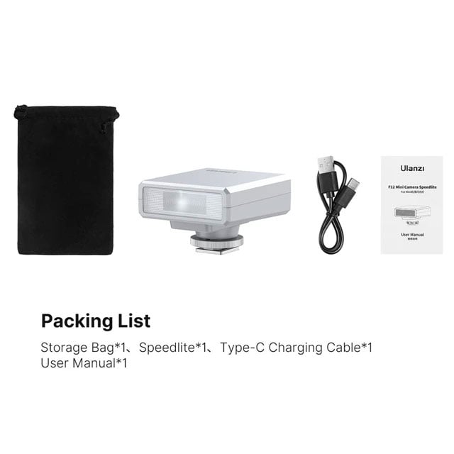 Đèn flash máy ảnh mini Ulanzi F12 dành cho Sony, Canon, Nikon, Panasonic, Olympus, v.v. Đế gắn hot shoe tiêu chuẩn, 1/250 HSS, thời gian tái chế 1-7 giây, CCT 5600K. Được tích hợp pin 1200mAh, sạc type-C tiện lợi.