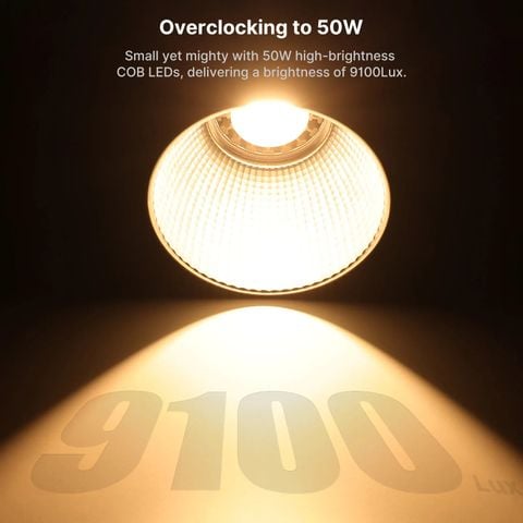 Nhỏ nhưng mạnh mẽ với đèn LED COB độ sáng cao 50W, mang lại độ sáng 9100Lux.
