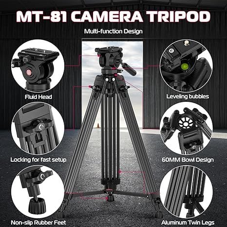 【Fluid Head】Đầu "Fluid Head" chân máy ảnh MT-81 chịu lực cao có thể xoay 360° theo chiều ngang và nghiêng theo chiều dọc từ -70° đến 90°, mang đến cho bạn góc chụp hoàn hảo và nâng cao trải nghiệm chụp ảnh của bạn