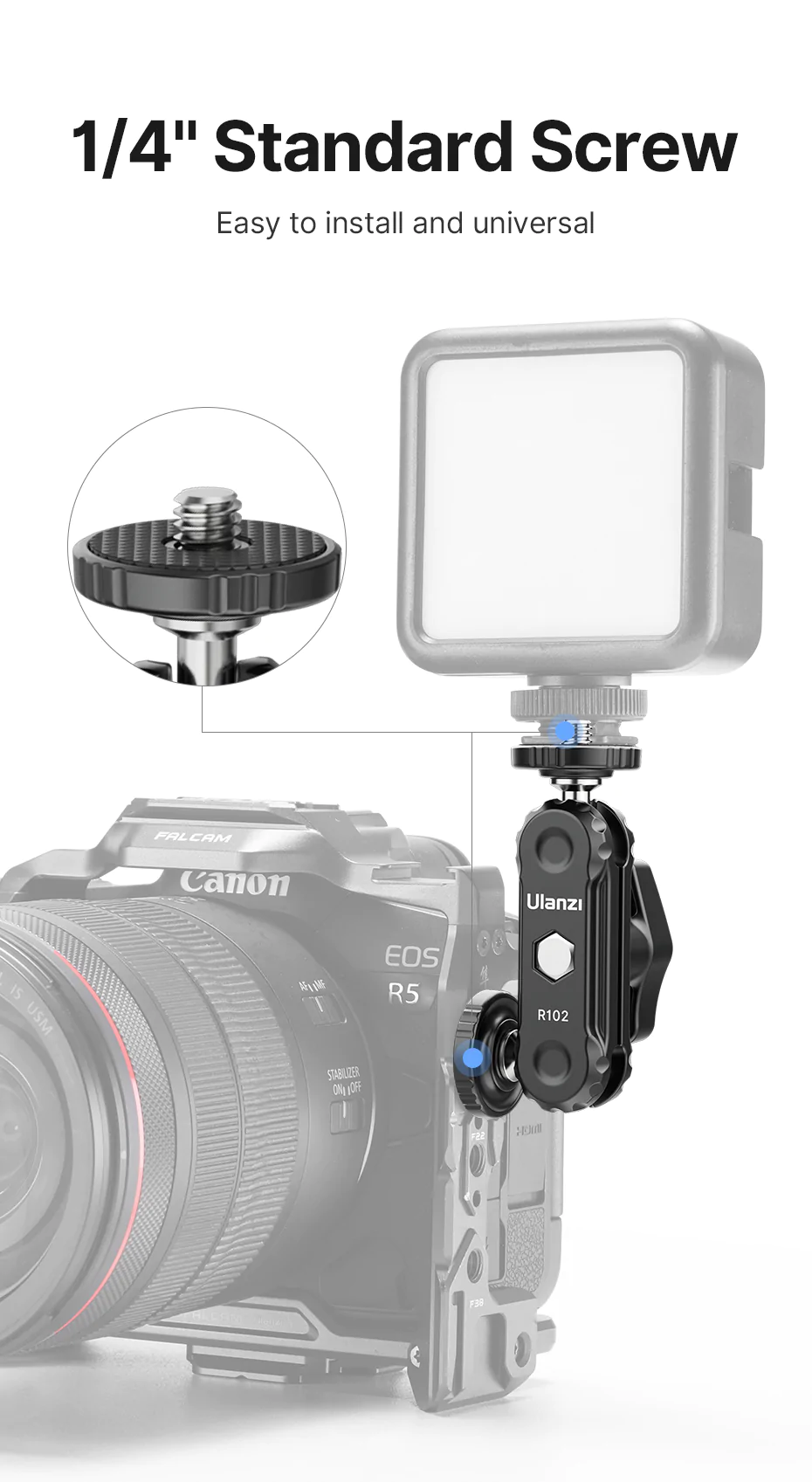◾ Với vít 1/4 tiêu chuẩn để gắn đèn LED, màn hình, micrô, máy ảnh,....