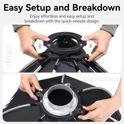 Ulanzi Softbox 60cm/60cm mini Octagonal with Bowens Mount được thiết kế cho các nhiếp ảnh gia và nhà quay phim đang tìm kiếm giải pháp chiếu sáng đa năng và thân thiện với người dùng. Softbox này có thiết kế tháo lắp nhanh dễ dàng thiết lập và tháo rời, lý tưởng cho cả quay phim trong studio và khi di chuyển. Thiết kế có thể gập lại và di động đảm bảo tiết kiệm không gian và thuận tiện khi mang theo. Với trọng lượng 642g cho phiên bản 60cm, sản phẩm này nhẹ và dễ quản lý. Softbox tương thích với hầu hết các đèn studio thông dụng, bao gồm Đèn video 100W , 120W và 200W của Ulanzi , nhờ ngàm Bowens phổ thông. Được làm bằng vải nylon mật độ cao và bộ khuếch tán phản quang, sản phẩm cung cấp ánh sáng mềm mại, đều, hoàn hảo để tạo hiệu ứng ánh sáng tự nhiên. Ngoài ra, sản phẩm còn có lưới để kiểm soát hướng ánh sáng tốt hơn. Nâng cao thiết lập chiếu sáng của bạn với Softbox bát giác tháo lắp nhanh Ulanzi để có kết quả chất lượng chuyên nghiệp.