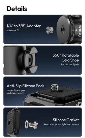 Tương thích đa thiết bị: DSLR, mirrorless, action camera, máy quay vlog, tripod mini…