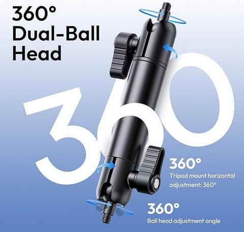 Đầu bi kép xoay 360° theo cả chiều ngang và dọc.