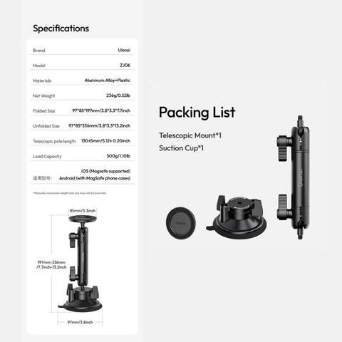 Ulanzi ZJ06 Giá Đỡ Hút Chân Không – Magic Arm Đa Năng Cho iPhone & Smartphone MagSafe.
