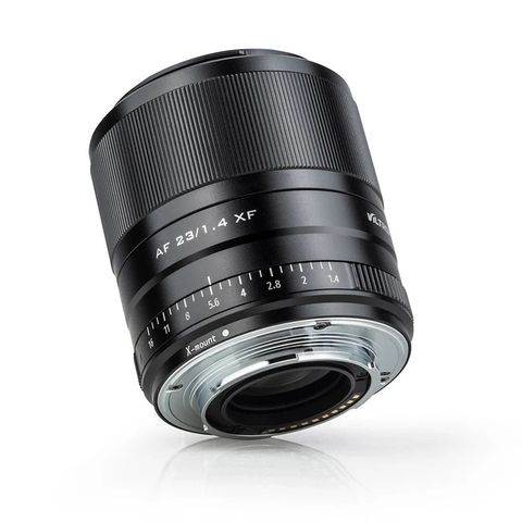 Ống kính Viltrox 23mm F1.4 có động cơ bước STM, khẩu độ F1.4 tạo hiệu ứng nhòe mờ, 11 thấu kính với lớp phủ HD Nano, thân máy bằng kim loại bền, trọng lượng 0,57lb và cổng micro-USB để cập nhật.
