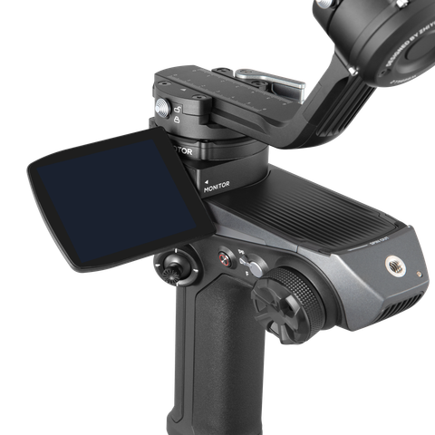 Đặc biệt ở Zhiyun-Tech WEEBILL 2 là tích hợp màn hình cảm ứng màu lật ra 2,9″ tích hợp có thể xoay theo góc mong muốn và gập lại khi không cần thiết.